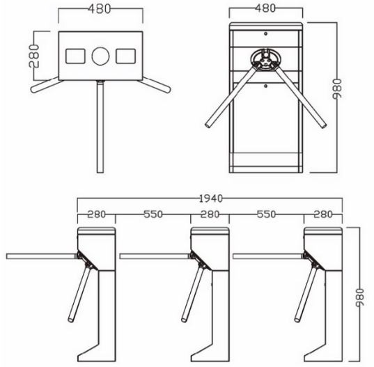 Mehanizam: Kontrolu nad operacijom tronožac se postiže glavni mehanizam za elektromehanički koja se nalazi u gornjem delu u turnstile sluиajevima. Sastoji se od standardne funkcije: